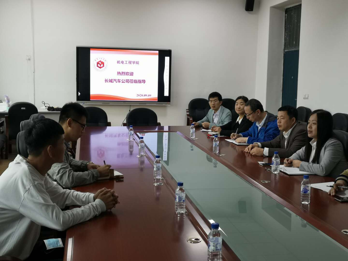 葛一峰经理代表长城汽车公司祝贺双方校企合作项目顺利开展,向致力于此项工作的各位老师表示衷心的感谢和节日的祝福。会上,葛经理介绍了长城汽车多年来校企合作的成果和经验,并围绕职业规划发展与学生们展开热烈交流,同时向同学们发出诚挚邀请,希望大家发扬机电工程学院求实创新、和谐向上的学风,“制造未来、成型精彩,服务社会”,在充满机遇和挑战的时代,与长城汽车一起不断突破,去创造无限可能。