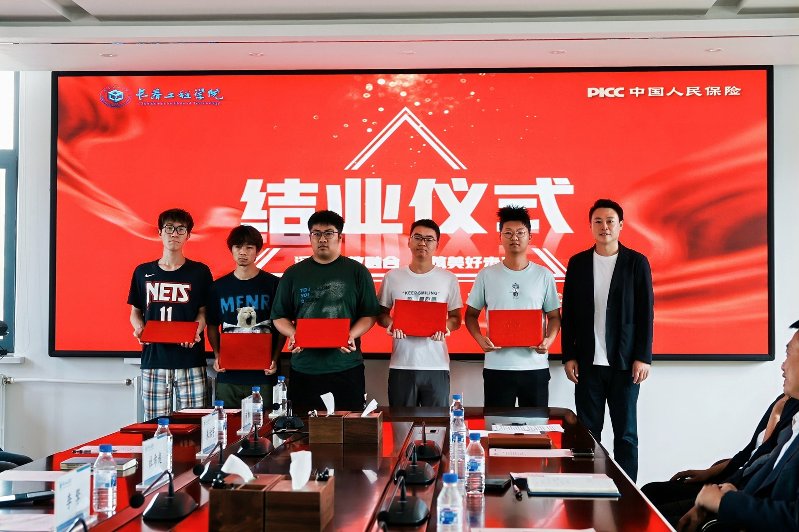 人保财险长春市分公司党委委员、副总经理李擎为顺利完成学业的订单班学员颁发结业证书。