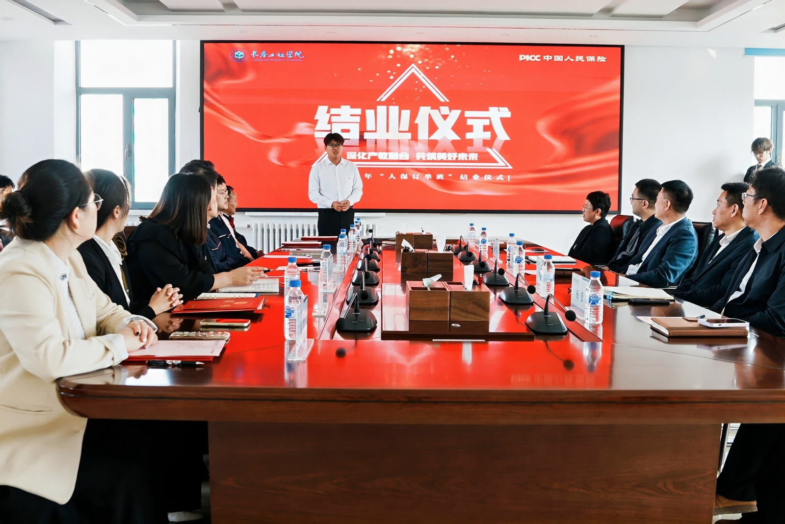 为深入贯彻落实产教融合、协同培养人才的重要理念,9月29日上午,人保财险订单班结业仪式于长春工程学院湖西校区办公楼241会议室顺利举行。参加会议人员包括长春工程学院教务处副处长赵麒、人保财险长春市分公司副总经理李擎等工作人员、长春工程学院汽车工程学院班子成员及教师与学生代表。仪式由汽车工程学院智能车辆工程系主任金鑫主持。