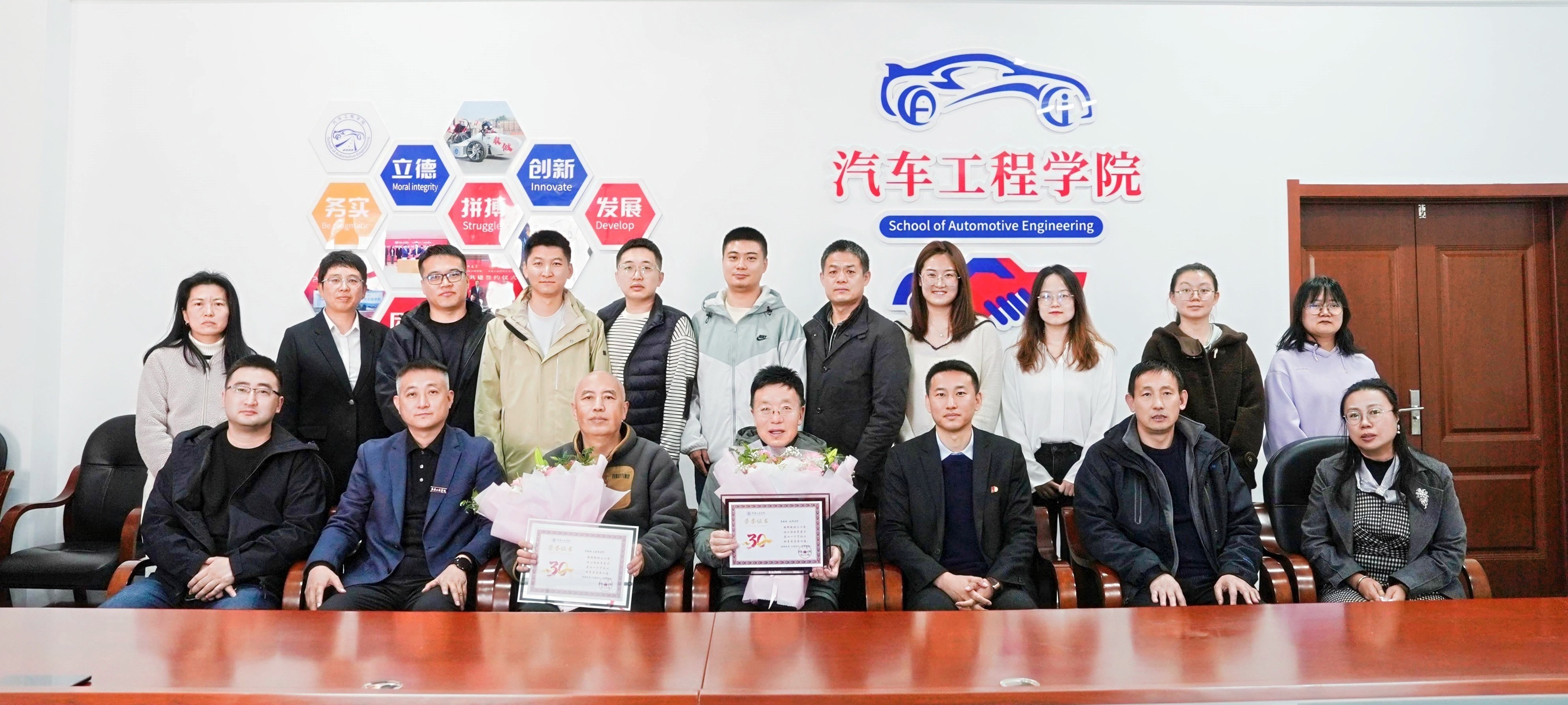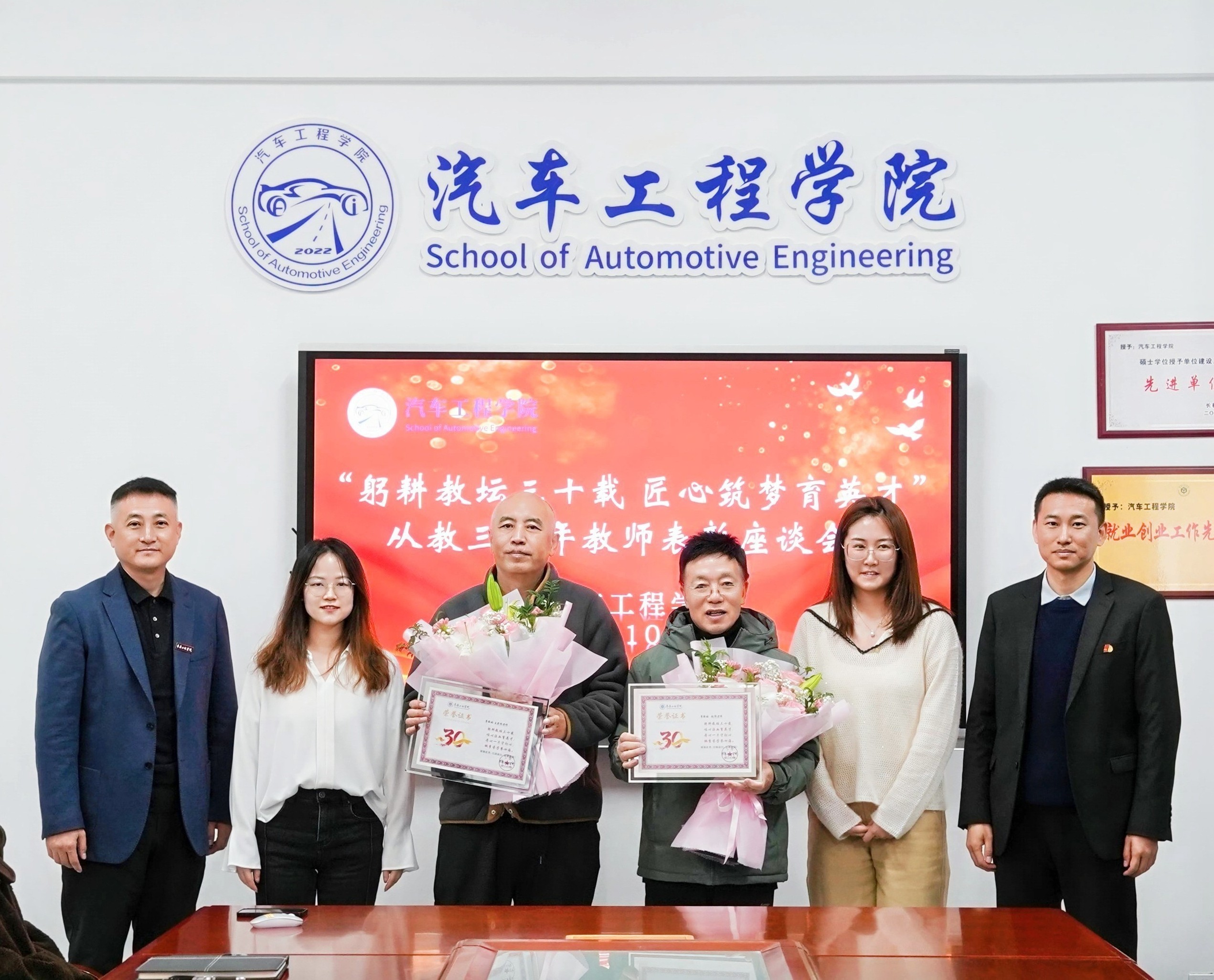 为表彰长期坚守教育一线、默默奉献的资深教师,弘扬尊师重教、爱岗敬业的优良风尚,传承师德师风正能量,10月22日,汽车工程学院于会议室隆重举办“躬耕教坛三十载 匠心筑梦育英才”从教三十年教师表彰座谈会。学院班子成员与全体教师共同致敬深耕教坛的教育前辈。