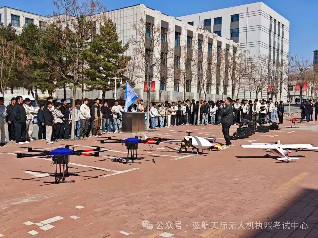签约仪式结束后,精彩的无人机飞行表演在校园精彩上演,为现场师生呈现了一场科技感与艺术性兼具的视觉盛宴。蓝航天际专业飞行教员操控多型号无人机依次升空、灵活穿梭,精准完成各项飞行操作。无人机编队低空悬停、高空盘旋、整齐列队、阵型变换等一系列高难度动作连贯流畅、井然有序,全方位展现了无人机前沿技术的独特魅力。沉浸式的实景演示,让师生近距离直观感受低空科技的硬核实力,有效激发了广大学生对无人机技术的探索欲望与学习热情。此次飞行表演,既是企业核心技术的直观展示,也是校企合作落地见效的初步成果,进一步提振了学子投身低空经济与无人机产业的信心与期待。